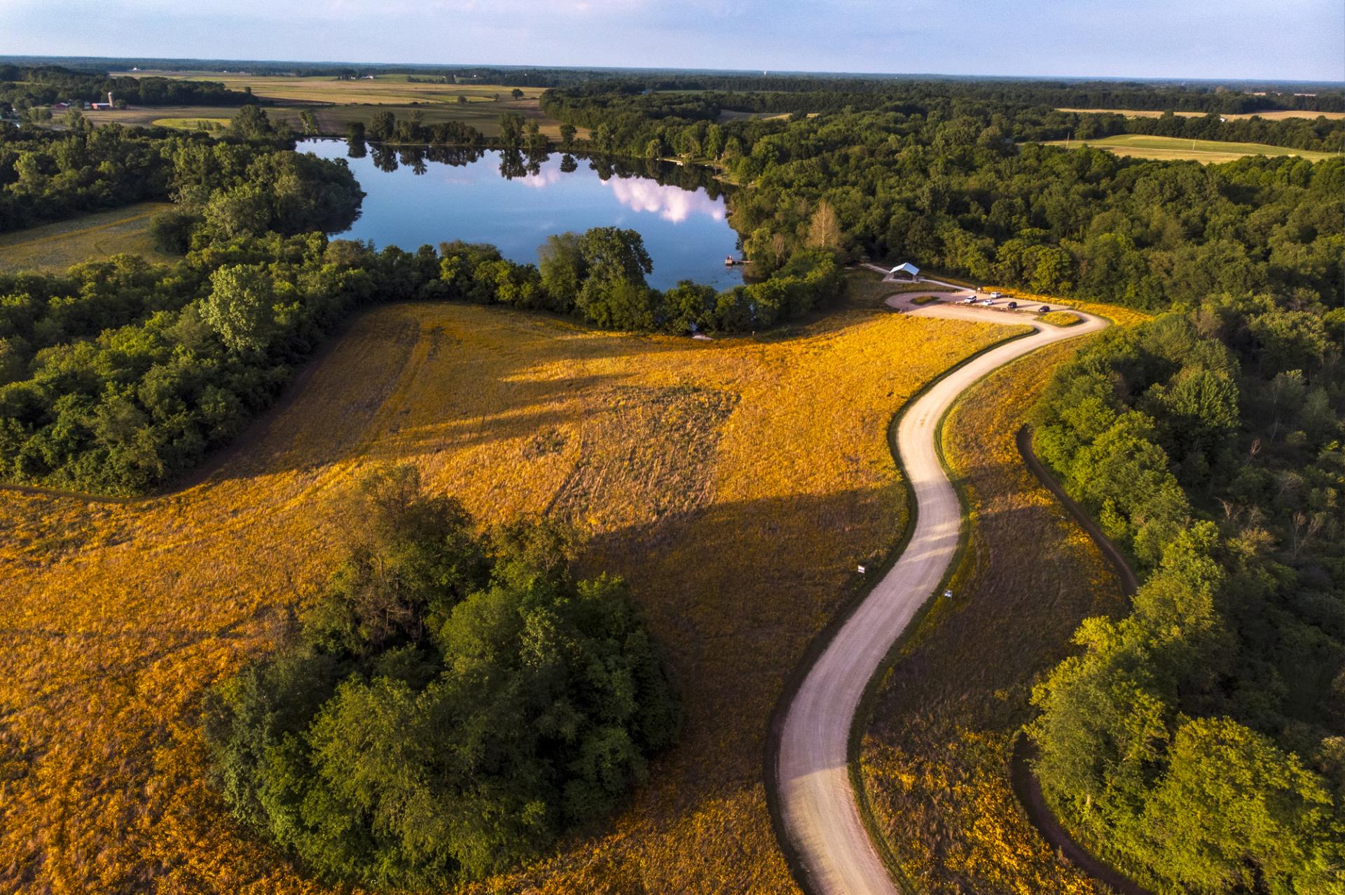 As one of St. Joseph County’s newest developments, Plumb Lake offers a 100% green experience. Hike through rolling prairies and woodlands, explore over boardwalks and bridges, or enjoy the world-class Coreopsis blooms from our dedicated overlook deck.